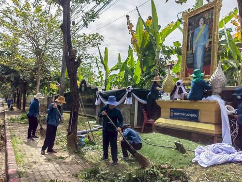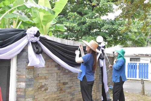 นางนวลจันทร์ ศรีมงคล ผู้ตรวจราชการกรม ปฏิบัติหน้าที่ผู้อำนวยการศูนย์ศึกษาและพัฒนาชุมชนอุบลราชธานี นำคณะข้าราชการและเจ้าหน้าที่ศูนย์ศึกษาและพัฒนาชุมชนอุบลราชธานี ร่วมกับบุคลากรศูนย์สารภีอุบลราชธานี ร่วมแรงร่วมใจดำเนินกิจกรรม “เอามื้อสามัคคี ปรับภูมิทัศน์และประดับผ้าขาวดำ บริเวณด้านหน้าและรอบรั้วศูนย์ศึกษาและพัฒนาชุมชนอุบลราชธานี”