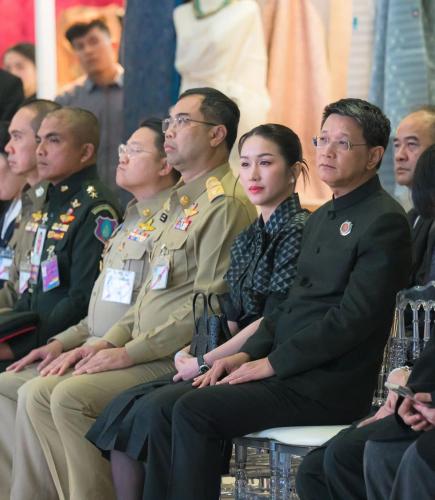 ในการนี้ นางสาวธนนนท์ นิรามิษ ประธานคณะกรรมการคู่สมรสคณะรัฐมนตรีและที่ปรึกษากิตติมศักดิ์สมาคมแม่บ้านมหาดไทย นายอรรษิษฐ์ สัมพันธรัตน์ ปลัดกระทรวงมหาดไทย นางจิณณารัชช์ สัมพันธรัตน์ นายกสมาคมแม่บ้านมหาดไทย นายสยาม ศิริมงคล อธิบดีกรมการพัฒนาชุมชน นางอรจิรา ศิริมงคล อุปนายกสมาคมแม่บ้านมหาดไทยและประธานชมรมแม่บ้านพัฒนาชุมชน คณะผู้บริหารในสังกัดกระทรวงมหาดไทย คณะผู้บริหารข้าราชการกรมการพัฒนาชุมชน คณะผู้เชี่ยวชาญด้านผ้าไทยและที่ปรึกษาโครงการผ้าไทยใส่ให้สนุก ผู้ทรงคุณวุฒิ ผู้เชี่ยวชาญ ดีไซเนอร์ ภาคีเครือข่าย นักเรียน นิสิต นักศึกษา และประชาชน ร่วมรับเสด็จและฟังเสวนาเป็นจำนวนมาก