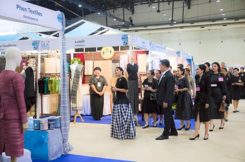 ภายหลังเสร็จกิจกรรมเสวนา พระองค์ได้เสด็จทอดพระเนตร นิทรรศการเฉลิมพระเกียรติสมเด็จพระนางเจ้าสิริกิติ์ พระบรมราชินีนาถ พระบรมราชชนนีพันปีหลวง ซึ่งจัดแสดงชุดไทยพระราชนิยมและผลงานหัตถศิลป์ที่สะท้อนรากเหง้าวัฒนธรรมไทย รวมถึงนิทรรศการตามแนวพระดำริ “ผ้าไทยใส่ให้สนุก” ที่สร้างงาน สร้างอาชีพแก่ประชาชนจากหลายภูมิภาค พร้อมเสด็จเยี่ยมชมร้านค้าผลิตภัณฑ์ผ้าไทยภายในงาน Silk Festival 2025 ซึ่งมีผู้ประกอบการกว่า 200 ร้านค้า ที่ส่วนหนึ่งเป็นผู้ประกอบการที่ได้รับผลกระทบจากเหตุการณ์น้ำท่วมภาคใต้เข้าร่วมออกร้านในครั้งนี้ด้วย โดยพระองค์ได้ทรงให้กำลังใจแก่ผู้ผลิต