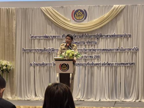 ในการนี้ นายสยาม ศิริมงคล อธิบดีกรมการพัฒนาชุมชน ประธานเปิดโครงการ การพัฒนาบุคลากรสร้างความรู้ความเข้าใจในการปฏิบัติงานตามหลักธรรมาภิบาล และปลูกฝังคุณธรรม จริยธรรม กิจกรรมการประชุมเชิงปฏิบัติการเพิ่มประสิทธิภาพการบริหารทรัพบากรบุคคลและการดำเนินการทางวินัย โดยมีกลุ่มเป้าหมาย 180 คน ประกอบไปด้วย ผู้อำนวยการกลุ่มงานประสานและเจ้าหน้าที่ ผู้รับผิดชอบงานเจ้าหน้าที่ สังกัด สพจ.76 จังหวัดๆ ละ 2 คน รวม152 คน หัวหน้าฝ่ายอำนวยการ เจ้าหน้าที่ผู้รับผิดชอบงานการเจ้าหน้าที่ สังกัดส่วนกลาง รวม 17 คน ผู้รับผิดชอบงานการเจ้าหน้าที่ สังกัดศูนย์ศึกษาและพัฒนาชุมชน แห่งละ 1 คน รวม 11 คน ดำเนินการระหว่างวันที่ 22 - 24 ธันวาคร 2568