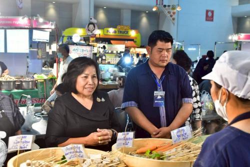 ผู้ตรวจราชการกรม (นางนวลจันทร์ ศรีมงคล) ปฏิบัติหน้าที่ผู้อำนวยการศูนย์ศึกษาและพัฒนาชุมชนอุบลราชธานี ตรวจเยี่ยมบูธผู้ผลิต ผู้ประกอบการ OTOP ภายในงาน OTOP City 2025