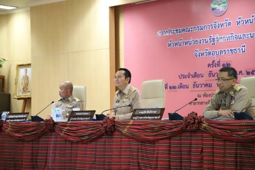 ในการนี้ นายณรงค์ เทพเสนา ผู้ว่าราชการจังหวัดอุบลราชธานี พร้อมด้วยรองผู้ว่าราชการจังหวัดอุบลราชธานี เป็นประธานการประชุมคณะกรมการจังหวัดอุบลราชธานี หัวหน้าส่วนราชการ หัวหน้าหน่วยงานรัฐวิสาหกิจ คณะกรรมการร่วมภาคเอกชน 3 สถาบัน จังหวัดอุบลราชธานี และนายอำเภอ ครั้งที่ 12/2568 ประจำเดือนธันวาคม
