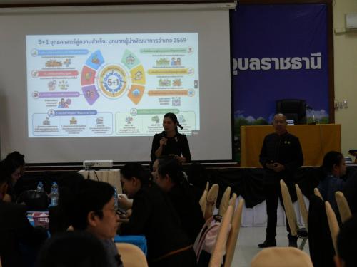 ผู้ตรวจราชการกรม (นางนวลจันทร์ ศรีมงคล) ปฏิบัติหน้าที่ผู้อำนวยการศูนย์ศึกษาและพัฒนาชุมชนอุบลราชธานี เป็นประธานในพิธีปิดโครงการเพิ่มประสิทธิภาพการตรวจราชการและสนับสนุนหน่วยรับตรวจในการขับเคลื่อนงานตามแผนปฏิบัติราชการกรมการพัฒนาชุมชน กิจกรรมที่ 2 การพัฒนากลไกการตรวจราชการแบบมีส่วนร่วมภาคีเครือข่ายการพัฒนา