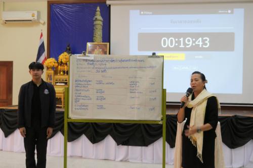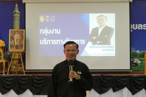 ในการนี้ได้รับเกียรติจาก นางสาวสุวรีย์ อัครพงศ์เดชาโชติ หัวหน้ากลุ่มงานป้องกันการทุจริต สำนักงาน ป.ป.ช.ประจำจังหวัดอุบลราชธานี บรรยายเรื่องหลักสูตรกลยุทธ์การขับเคลื่อนหลักสูตรในพื้นที่ ต่อมานางสาวพิมพ์รำไพ สังข์ทอง นักทรัพยากรบุคคลปฏิบัติการ บรรยายเรื่อง เทคนิดการถ่ายทดความรู้และการจัดกระบวนการเรียนรู้แบบมีส่วนรู้