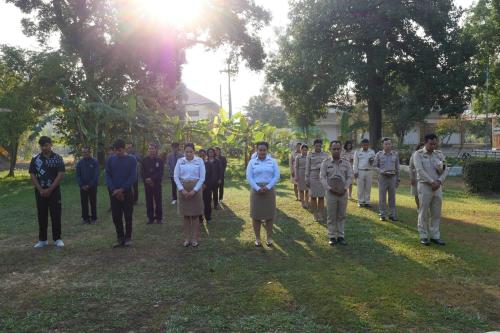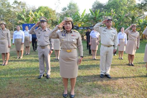 นางนวลจันทร์ ศรีมงคล ผู้ตรวจราชการกรมการพัฒนาชุมชน ปฏิบัติหน้าที่ผู้อำนวยการศูนย์ศึกษาและพัฒนาชุมชนอุบลราชธานี นำคณะข้าราชการ พนักงานราชการ และบุคลากรศูนย์ศึกษาและพัฒนาชุมชนอุบลราชธานี ร่วมกิจกรรมเคารพธงชาติ เพื่อเสริมสร้างจิตสำนึกรักชาติ ความจงรักภักดีต่อสถาบันชาติ ศาสนา พระมหากษัตริย์ และปลูกฝังค่านิยมที่พึงประสงค์ของการเป็นข้าราชการที่ดี