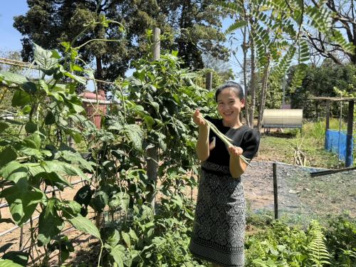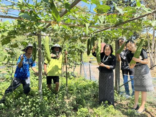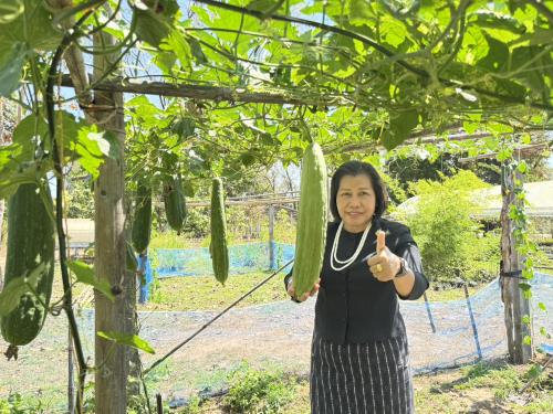 ในการนี้ นางนวลจันทร์ ศรีมงคล ผู้ตรวจราชการกรม ปฏิบัติหน้าที่ผู้อำนวยการศูนย์ศึกษาและพัฒนาชุมชนอุบลราชธานี ได้ลงพื้นที่ติดตามผลการดำเนินงานศูนย์สารภีอุบลราชธานี และเยี่ยมชมแปลงพืชผักสวนครัว แปลงพืชผักดังกล่าวประกอบด้วยพืชผักสวนครัวหลากหลายชนิด ได้แก่ มะเขือ พริก มะเขือเทศ ผักสลัด ถั่วฝักยาว บวบ มะระ ถั่วพลู และอื่นๆ ซึ่งเป็นพืชอาหารที่มีคุณค่าทางโภชนาการสูง ใช้ระยะเวลาปลูกสั้น ดูแลรักษาง่าย และสามารถเก็บเกี่ยวได้อย่างต่อเนื่อง สอดคล้องกับหลักการผลิตอาหารเพื่อการพึ่งพาตนเอง ลดรายจ่าย และเพิ่มความมั่นคงทางอาหารในระดับองค์กร