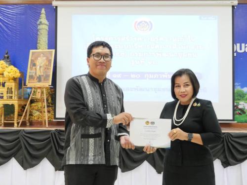 นางนวลจันทร์ ศรีมงคล ผู้ตรวจราชการกรม ปฏิบัติหน้าที่ผู้อำนวยการศูนย์ศึกษาและพัฒนาชุมชนอุบลราชธานี ให้เกียรติเป็นประธานในพิธีปิดโครงการสร้างความรู้ความเข้าใจเกี่ยวกับระบบบริหารจัดการสำนักงาน (e-Office) กรมการพัฒนาชุมชน โดยสำนักงานเลขานุการกรม รุ่นที่ 10 ซึ่งจัดขึ้นระหว่างวันที่ 19 – 20 กุมภาพันธ์ 2569 ณ ห้องประชุมคำคูณ ศูนย์ศึกษาและพัฒนาชุมชนอุบลราชธานี