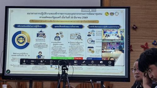 ในการประชุม ประธานได้แจ้งแนวทางการปฏิบัติงานตามมติคณะรัฐมนตรี โดยเน้นการบริหารจัดการการปฏิบัติงานนอกสถานที่ตั้ง (Work From Home) อย่างเป็นระบบ การจัดทำแผนและรายงานผลการปฏิบัติงานตามกรอบระยะเวลาที่กำหนด รวมทั้งกำชับการขับเคลื่อนโครงการสำคัญ อาทิ โครงการพัฒนาชุมชนใสสะอาด และการเตรียมจัดกิจกรรมวันสงกรานต์ ประจำปี 2569 เพื่อสืบสานประเพณีไทย