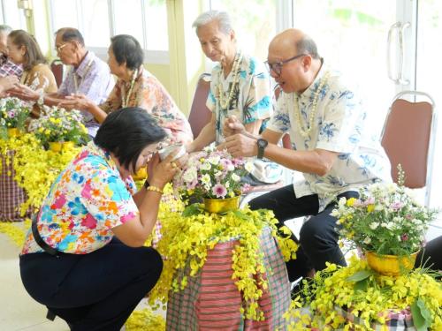 ช่วงเช้า คณะผู้บริหารและบุคลากรได้ร่วมกันกราบสักการะสิ่งศักดิ์สิทธิ์ประจำศูนย์ฯ เพื่อความเป็นสิริมงคล ก่อนจะร่วมกิจกรรมรดน้ำขอพรผู้สูงอายุและผู้เกษียณอายุราชการ