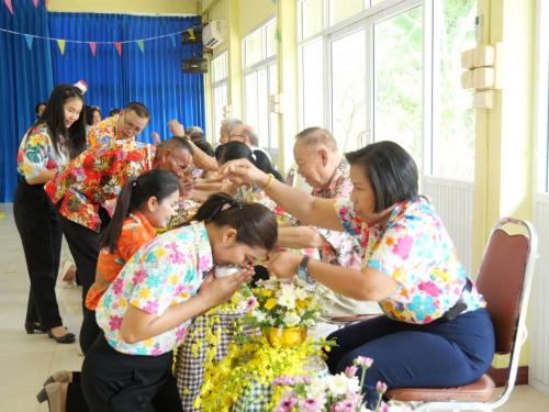 จากนั้น ได้มีพิธีรดน้ำขอพรเนื่องในเทศกาลสงกรานต์ โดยผู้อาวุโสที่เคยปฏิบัติหน้าที่ในศูนย์ฯ เข้าร่วมอย่างพร้อมเพรียง เป็นบรรยากาศที่สะท้อนถึงความเคารพ ความผูกพัน และการดูแลกันระหว่างรุ่น ซึ่งเป็นสิ่งสำคัญของการสร้างองค์กรคุณธรรม