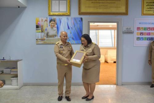 นางนวลจันทร์ ศรีมงคล ผู้ตรวจราชการกรม ปฏิบัติหน้าที่ผู้อำนวยการศูนย์ศึกษาและพัฒนาชุมชนอุบลราชธานี พร้อมด้วยนางราณี วงศ์ลุน พัฒนาการจังหวัดร้อยเอ็ด นายปรีชา มีราช ผู้อำนวยการกลุ่มงานประสานและสนับสนุนการบริหารงานพัฒนาชุมชน ผู้แทนจากพื้นที่รับผิดชอบ 7 จังหวัด ได้แก่ จังหวัดอุบลราชธานี นครพนม มุกดาหาร ร้อยเอ็ด ศรีสะเกษ ยโสธร และอำนาจเจริญ รวมถึงบุคลากรจากศูนย์ศึกษาและพัฒนาชุมชนอุบลราชธานี เข้าคาราวะและร่วมแสดงความยินดีต่อ นายสุรศักดิ์ อักษรกุล ในโอกาสเข้ารับตำแหน่งอธิบดีกรมการพัฒนาชุมชน