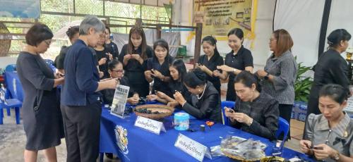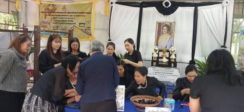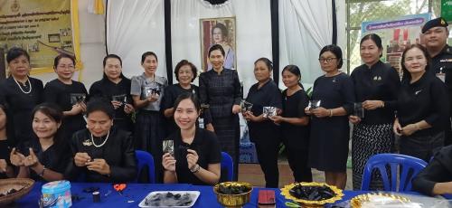 นางนวลจันทร์ ศรีมงคล ผู้ตรวจราชการกรม กรมการพัฒนาชุมชน ปฏิบัติหน้าที่ผู้อำนวยการศูนย์ศึกษาและพัฒนาชุมชนอุบลราชธานี มอบหมายให้นางอลิสรา จันทน์พิทักษ์ นักทรัพยากรบุคคลชำนาญการ รักษาราชการผู้อำนวยกากลุ่มงานตรวจราชการ พร้อมด้วยบุคลากร ศพช.อุบลราชธานี ร่วมกิจกรรมย้อมผ้าสีดำ และประดิษฐ์โบว์ไว้ทุกข์