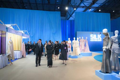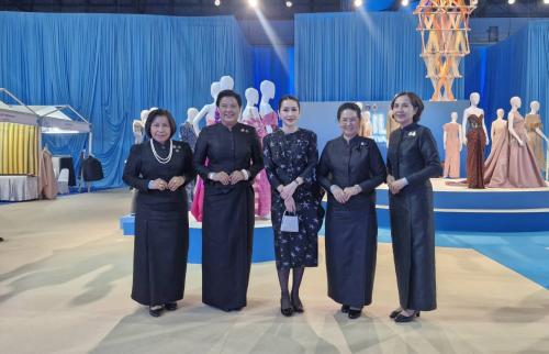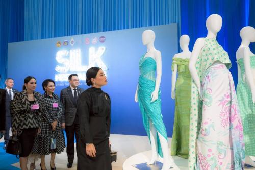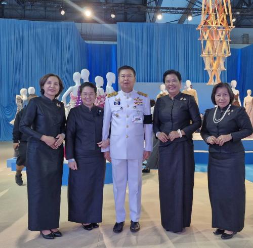 จากนั้นเสด็จทอดพระเนตรการแสดงแบบ “Sustainable Fashion Show” ที่ทรงร่วมสร้างสรรค์ผลงานแฟชั่นผ้าไทยร่วมกับ 30 ดีไซเนอร์ชั้นนำของประเทศ สร้างปรากฎการณ์ครั้งใหญ่ให้กับวงการแฟชั่นไทย และยกระดับผ้าไทยสู่สากลอย่างเต็มภาคภูมิ ไฮไลต์สำคัญของการแสดงแบบครั้งนี้คือแนวคิด “Sustainable Fashion” หรือแฟชั่นแห่งความยั่งยืน ผ่านการนำเสนอแฟชั่นผ้าไทยที่เป็นมิตรต่อสิ่งแวดล้อม ถ่ายทอดความงดงามวิจิตรบรรจง พร้อมเรื่องราวการเดินทางของเส้นใยธรรมชาติจากท้องถิ่นไทย สู่ผลงานการออกแบบตัดเย็บระดับโอต์กูตูร์ (Haute Couture) และสวมใส่ได้จริงในชีวิตประจำวัน รวม 31 แบรนด์ 67 ลุค ซึ่งพิสูจน์ที่ชัดเจนว่า “ผ้าไทย” ได้ก้าวข้ามขีดจำกัดเดิม ๆ สู่การเป็นผู้นำเทรนด์แฟชั่นโลกที่ยั่งยืน รวมทั้งแสดงให้เห็นว่า อุตสาหกรรมแฟชั่นไทยสามารถก้าวหน้าควบคู่ไปกับการรักษาสิ่งแวดล้อมและการกระจายรายได้สู่ชุมชนอย่างทั่วถึง