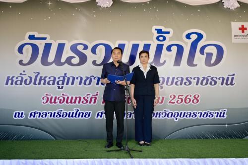 โดยมีนายณรงค์ เทพเสนา ผู้ว่าราชการจังหวัดอุบลราชธานี พร้อมด้วยนางฐิติวรดา เทพเสนา นายกเหล่ากาชาดจังหวัดอุบลราชธานี/ประธานแม่บ้านมหาดไทยจังหวัดอุบลราชธานี เป็นประธานเปิดกิจกรรม “วันรวมน้ำใจสู่กาชาด ประจำปี 2569 เพื่อหารายได้ช่วยเหลือผู้ประสบภัย ใช้จ่ายในกิจการสาธารณกุศล และกิจการเหล่ากาชาดจังหวัดอุบลราชธานี โดยมีรองผู้ว่าราชการจังหวัดอุบลราชธานี ปลัดจังหวัดอุบลราชธานี หัวหน้าส่วนราชการ อัยการ ศาล ทหาร ตำรวจ และส่วนราชการในพื้นที่ เข้าร่วมกิจกรรม “วันรวมน้ำใจสู่กาชาด ประจำปี 2569 ศูนย์ศึกษาและพัฒนาชุมชนอุบลราชธานี เข้าร่วมกิจกรรม “บริจาคเงินสมทบกิจกรรม “ วันรวมน้ำใจสู่กาชาด ประจำปี 2569” เป็นจำนวน 5,000 บาท